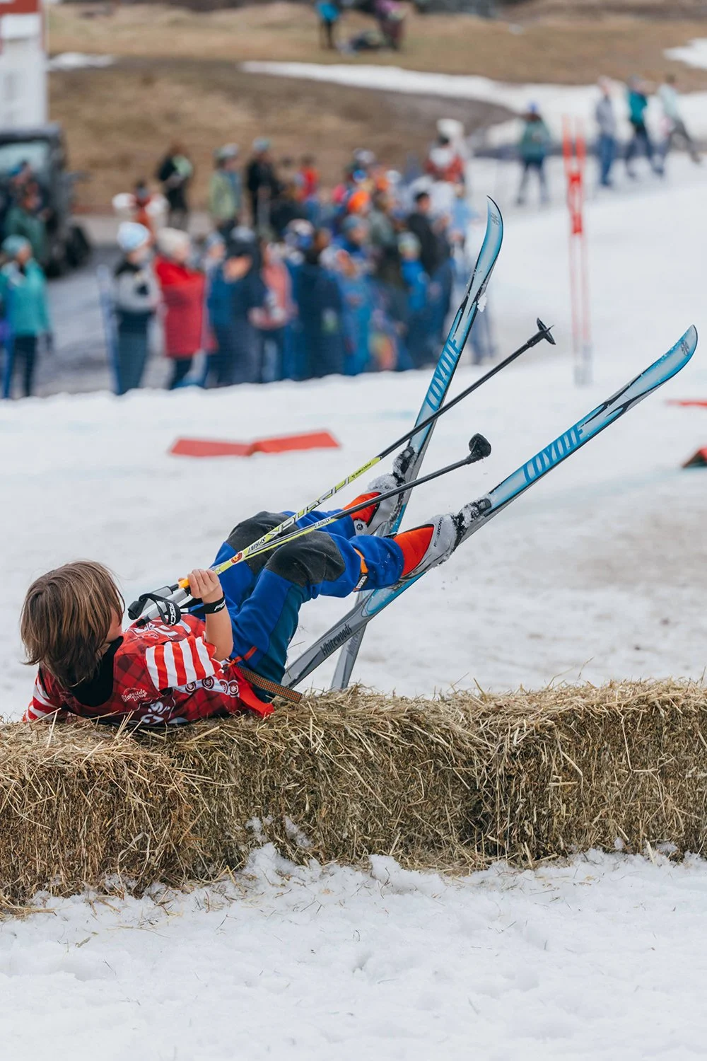 Nordic X racers at Cochran’s maneuver over hay bales among other obstacles in April 2025. Clover Whitham